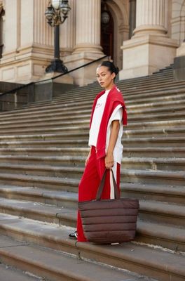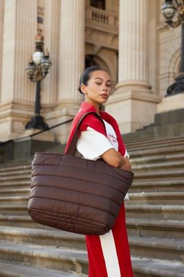 The take it base is your stylish sidekick with its bold, padded fabric and generously sized design. Take it from morning Pilates to an in-office day and a short weekend getaway. The chunky zip closure keeps everything contained while soft cotton shoulder straps deliver carrying comfort. Ultra-lightweight, cloud-like padding adds fun to the functionality of this everyday tote bag.