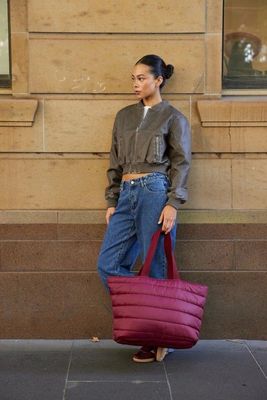 The take it base is your stylish sidekick with its bold, padded fabric and generously sized design. Take it from morning Pilates to an in-office day and a short weekend getaway. The chunky zip closure keeps everything contained while soft cotton shoulder straps deliver carrying comfort. Ultra-lightweight, cloud-like padding adds fun to the functionality of this everyday tote bag.