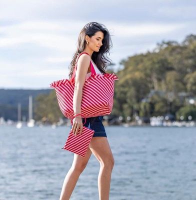 Black Caviar Bahama Woven Tote Bag Pink/Red