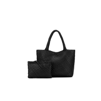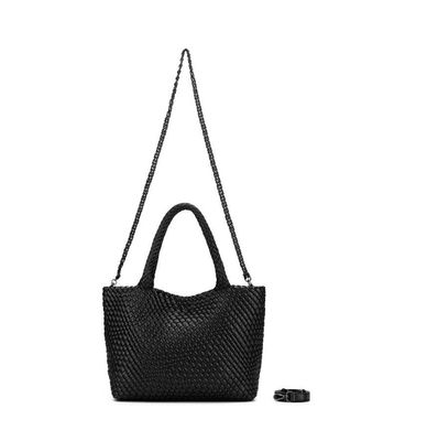 The St Moritz Tote, crafted in woven vegan leather, is the perfect balance of elegance and versatility. This 2-piece set includes a matching pouch and three interchangeable straps — cotton, PU, and woven chain giving you endless styling options. Spacious and refined, it’s designed to move effortlessly from city days to weekend escapes.