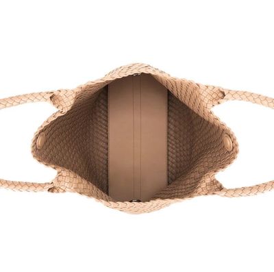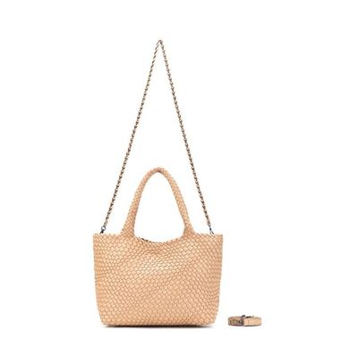 The St Moritz Tote, crafted in woven vegan leather, is the perfect balance of elegance and versatility. This 2-piece set includes a matching pouch and three interchangeable straps — cotton, PU, and woven chain giving you endless styling options. Spacious and refined, it’s designed to move effortlessly from city days to weekend escapes.
