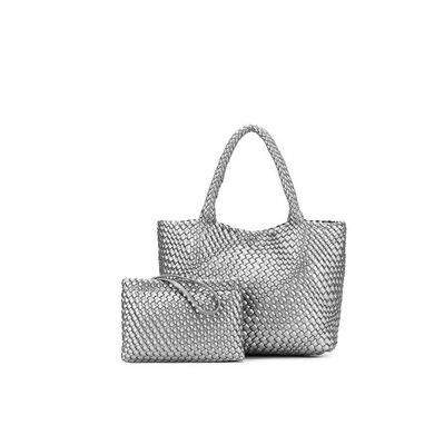 Black Caviar St Moritz Woven Handbag Pewter